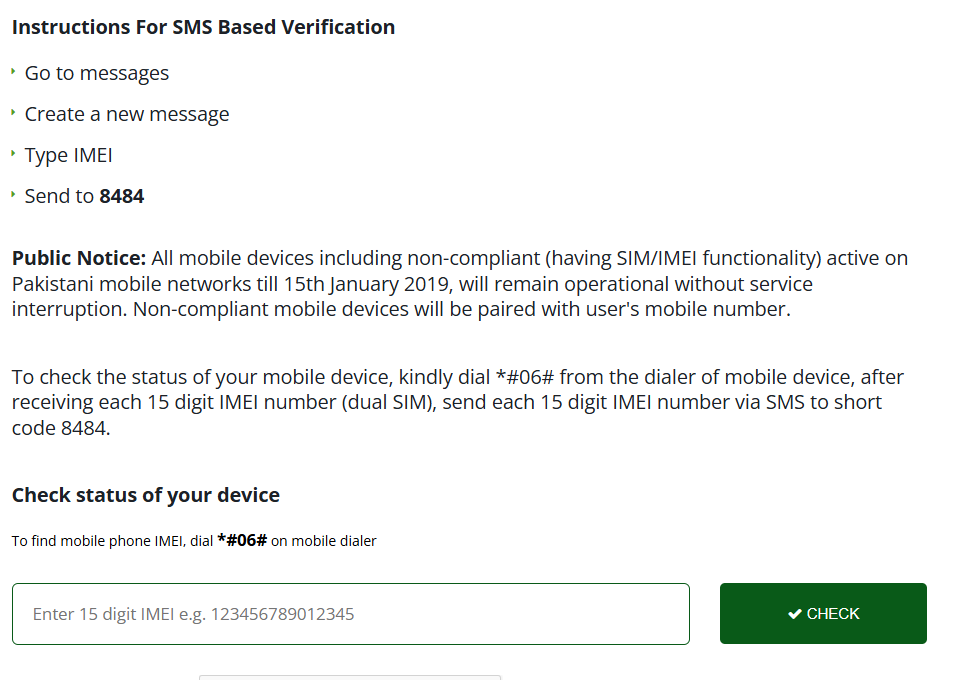 For those who prefer not to use the web portal, PTA offers a convenient SMS service. Users can send their IMEI number along with their CNIC (or passport for foreign nationals) to 8484. PTA then replies with the device’s registration status and tax compliance.